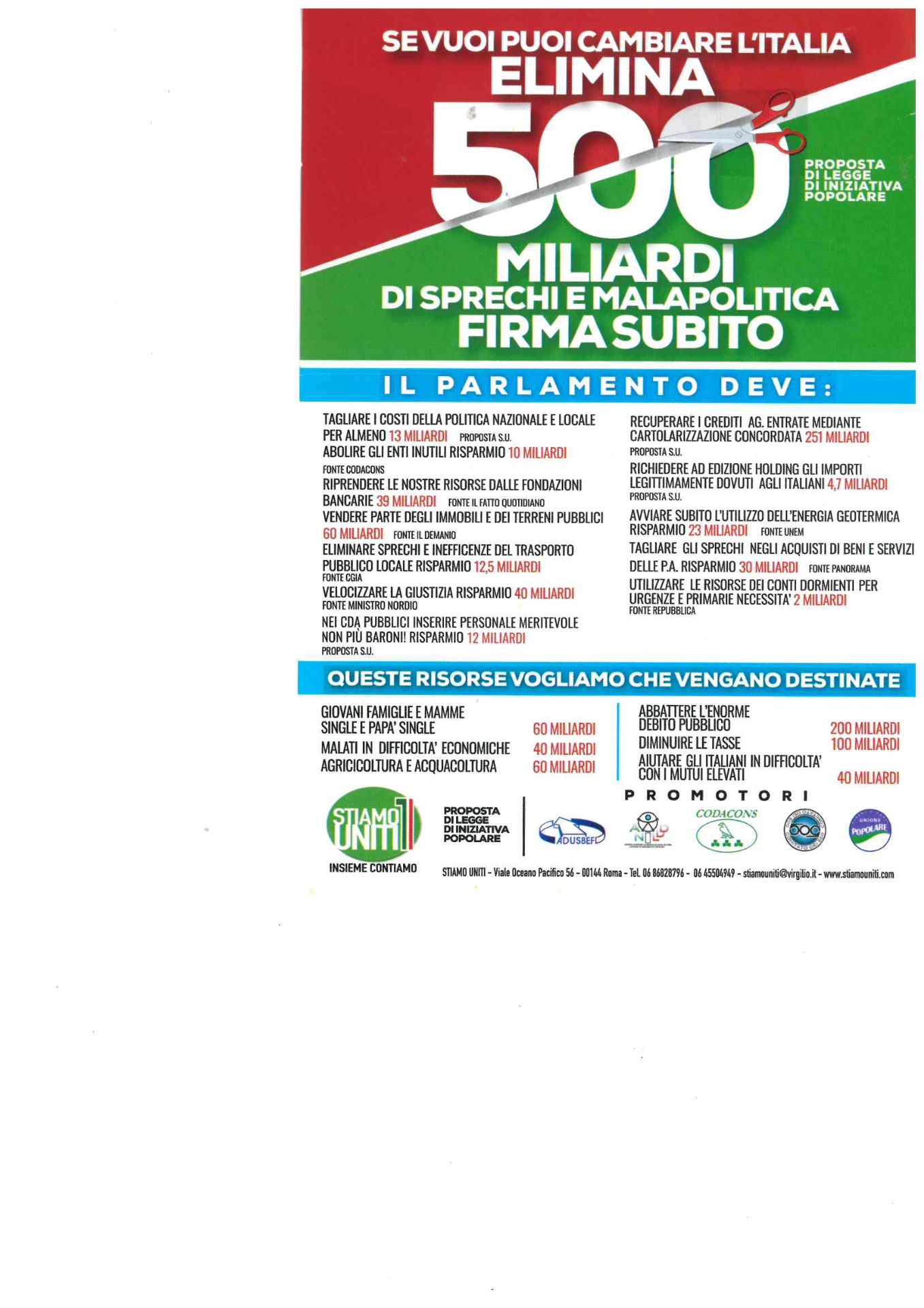 Descrizione raccolta firme: " proposta di iniziativa popolare per tagliare 500 miliardi di sprechi e malapolitica" scadenza 14.11.2024 A cura di Ufficio Amministrativo - Demografico Ultimo aggiornamento pagina: 04/07/2024 11:44:54