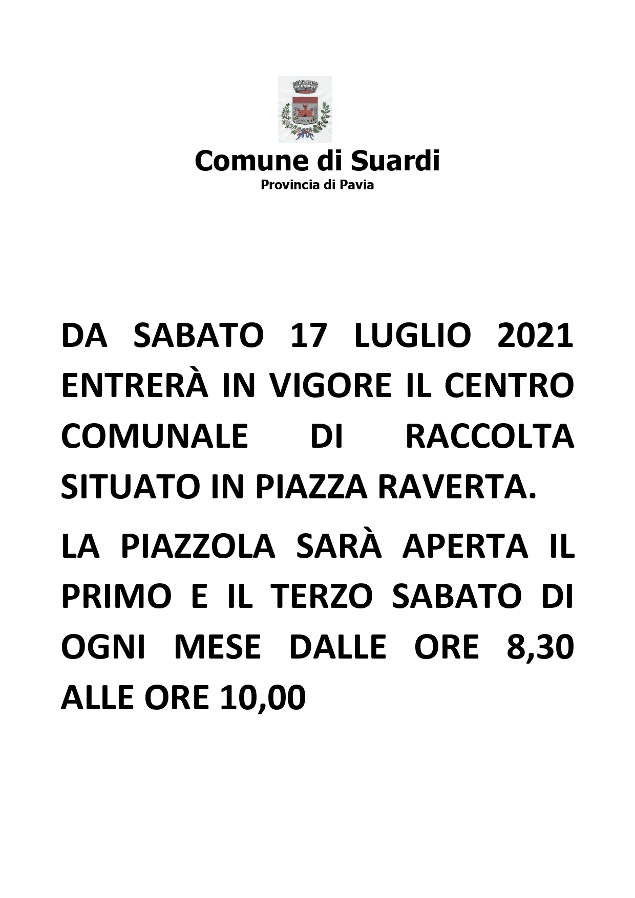 Descrizione Apertura Piazzola Ecologica Allegati Documenti Locandina [.jpg 329,07 Kb - 23/05/2023] Ultimo aggiornamento pagina: 23/05/2023 10:19:51